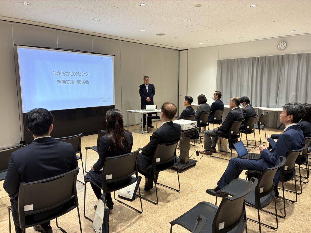 2026年3月3日、長岡市様・長岡商工会議所様・関係企業様にご参加いただき、「ながおかDXセンター 実績報告会」を開催しました。会では、当センターの活動実績の共有に加え、意見交換・質疑応答を行いました。